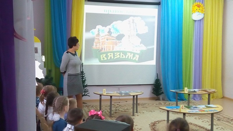 14 ноября 2019 года в МБДОУ детском саду №4 проведено открытое мероприятие по духовно-нравственному воспитанию дошкольников "Моя малая Родина", на котором присутствовали: руководитель отдела религиозного образования и катехизации Вяземской епархии протоиерей Олег Переверзев, методисты, воспитатели, музыкальные руководители ДОУ Вязьмы и Вяземского района. Данное мероприятие подготовлено и проведено воспитателем дошкольного учреждения Галаниной Анастасией Николаевной совместно с педагогом дополнительного образования МБУ ДО "Дом детского творчества" Лапатиной Ириной Игоревной. В ходе занятия дошкольники рассказывали о памятных местах и знаменитых людях города Вязьмы; рассматривали храмы, изображенные на репродукциях картин вяземского художника Виктора Максимовича Чайки, рассказывали стихи и исполняли песни; подарили гостям сердечки, изготовленные своим руками. В заключение протоиерей Олег Переверзев отметил работу педагогов и детей по данной теме.