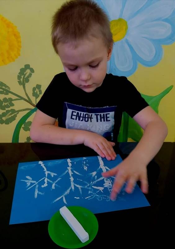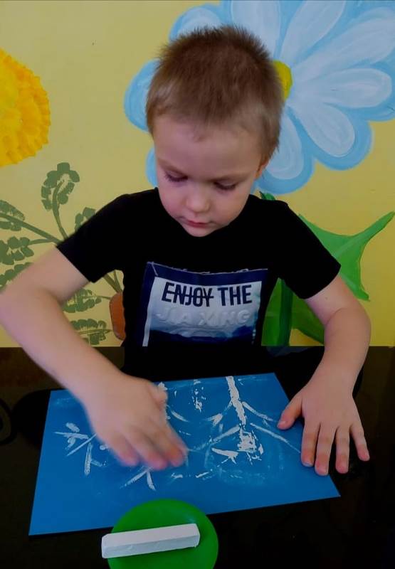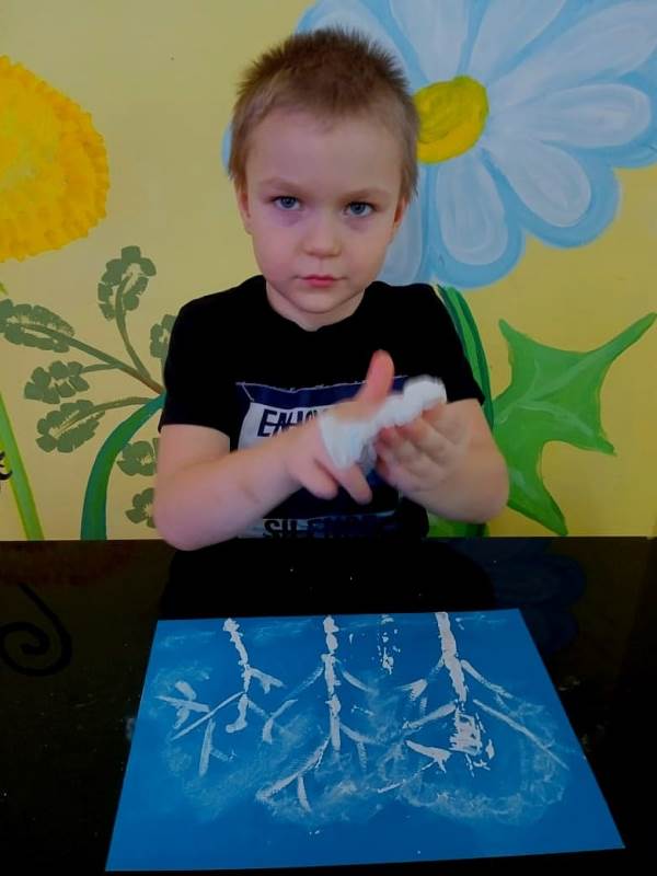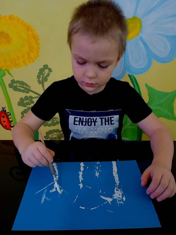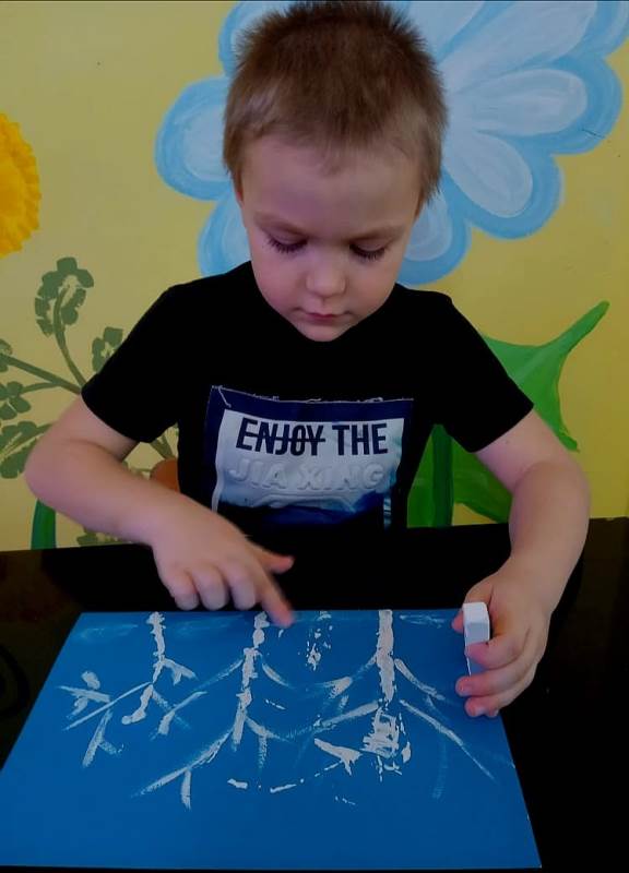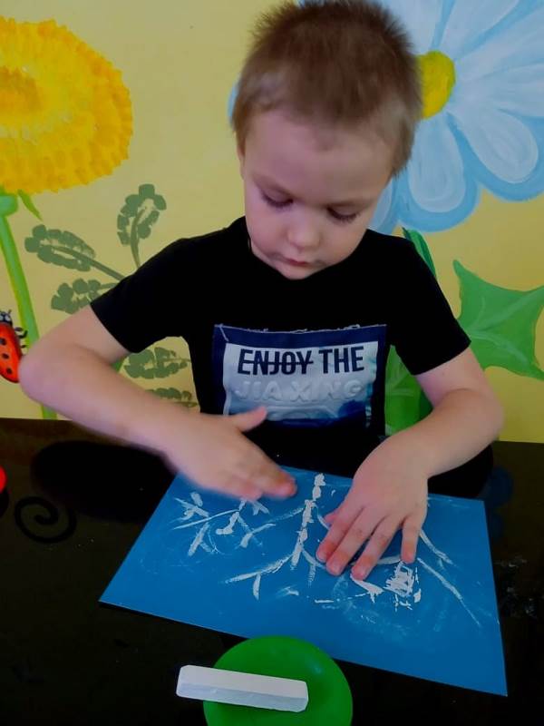 Детский мастер-класс по рисованию "В снега укутались деревья" с использованием гуаши и белого мела