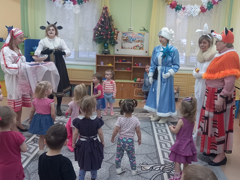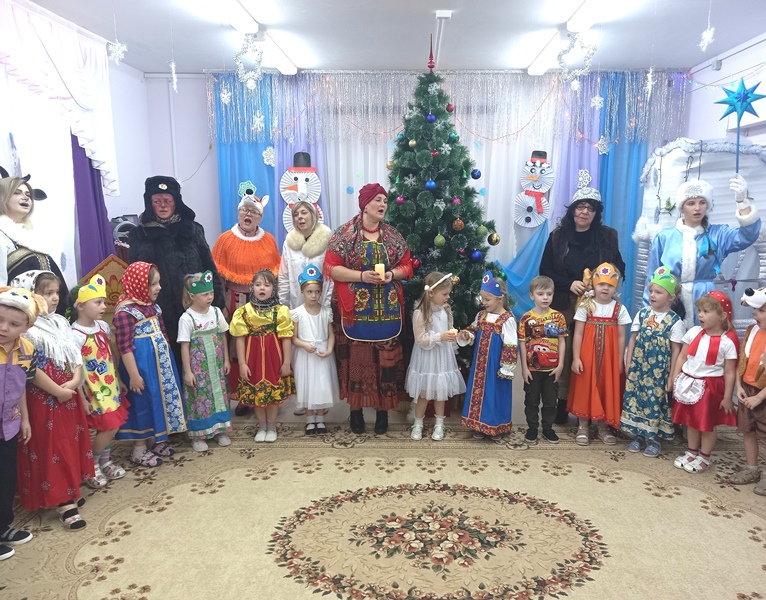 Стало хорошей и доброй традицией в нашем детском саду проводить рождественские колядки, которые в этом году прошли 13-го и 18- го января. Детям очень понравился праздник, где они в нарядных костюмах участвовали в традиционных рождественских играх, прославляли Коляду, водили хороводы, играли в народные игры, исполняли весёлые песенки-колядки, желали всех благ и, конечно, просили угощения. Хозяюшка угощала дорогих гостей сладостями. Отличный эмоциональный настрой детям подарила Коза, как символ богатства, плодородия. Есть древнее поверье, что к кому Коза придёт, будет счастье в доме и большой урожай. Этот праздник произвёл на детей незабываемые впечатления. Он получился веселым, шумным и интересным!