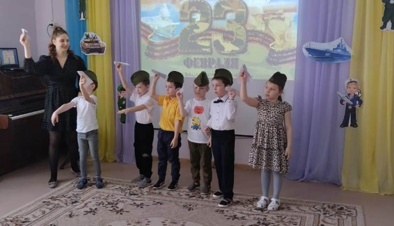 В преддверии праздника в нашем детском саду прошла тематическая неделя "Наша армия", в течение которой дети знакомились с традициями праздника, беседовали о том, какие защитники Отечества, разучивали стихи и песни об армии и солдатах, рассматривали книги и иллюстрации по теме, играли в игры, отгадывали загадки о военной технике, о разных родах войск. На занятиях по художественному творчеству, полученные знания дети воплотили в своих рисунках, аппликациях, ну и конечно в изготовлении подарков для своих пап, дедушек и старших братьев.