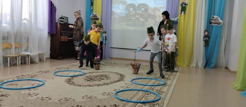 В канун праздничного дня прошли развлечения, посвященные 23 февраля. Дети проявили большую активность, подарили друг другу хорошее настроение, радость общения и улыбки, показали какие они ловкие, выносливые, смелые.