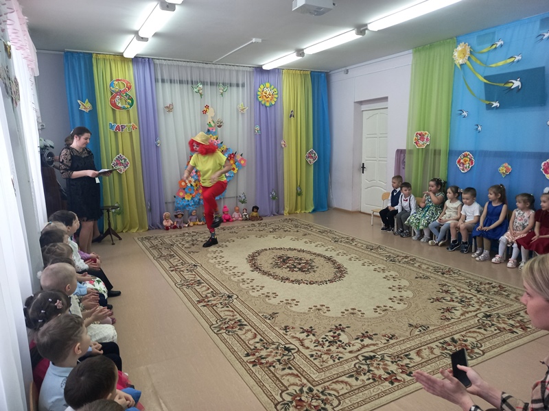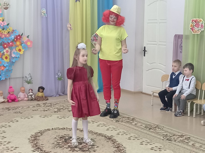 6 марта в средней группе "Капельки" состоялся утренник, посвященный такому прекрасному празднику. На утреннике наши воспитанники рассказывали праздничные стихотворения, пели красивые песни и танцевали. Конечно же, какой праздник без веселого героя. Нас посетил клоун Клёпа, который играл с детьми в веселые и интересные игры..