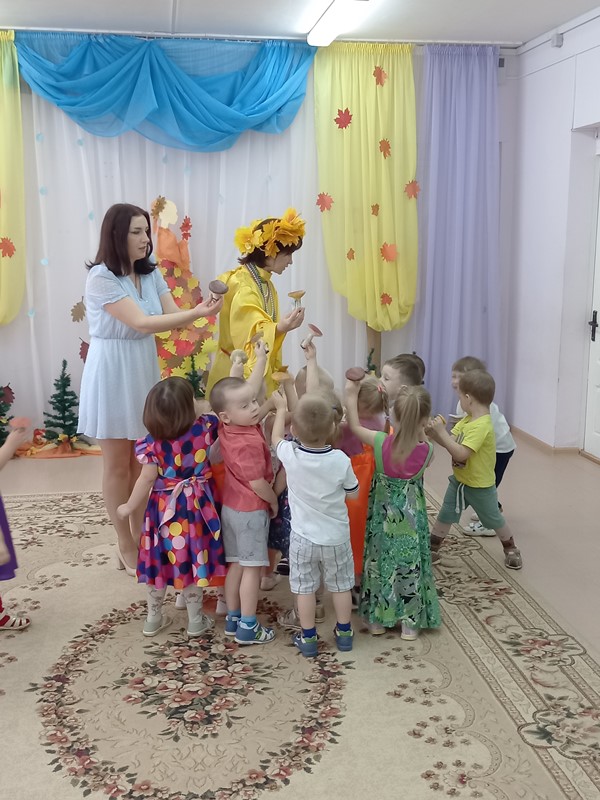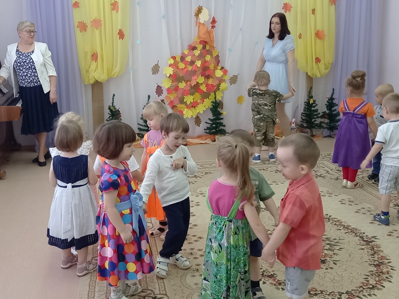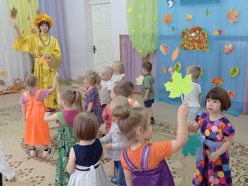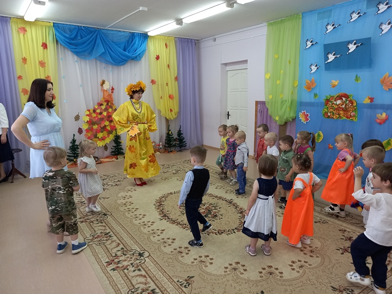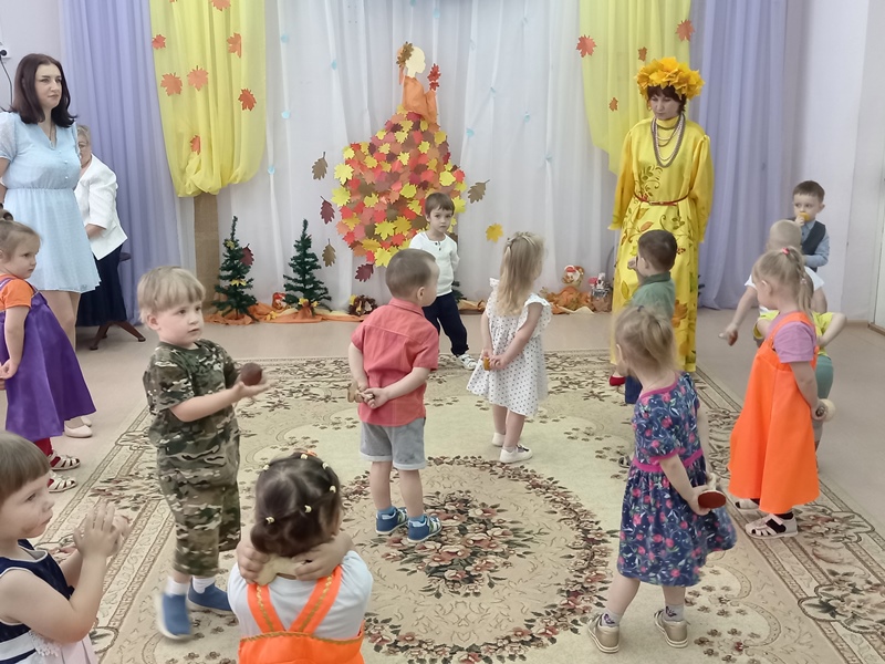 17 октября в младшей группе "Светлячки" прошел праздник "Путешествие в осенний лес". В гости к ребятам пришла волшебница Осень. Вместе с хозяйкой праздника дети отправились на паровозе в осенний лес. Там они играли в игры, танцевали, пели песни и рассказывали стихи об осени.