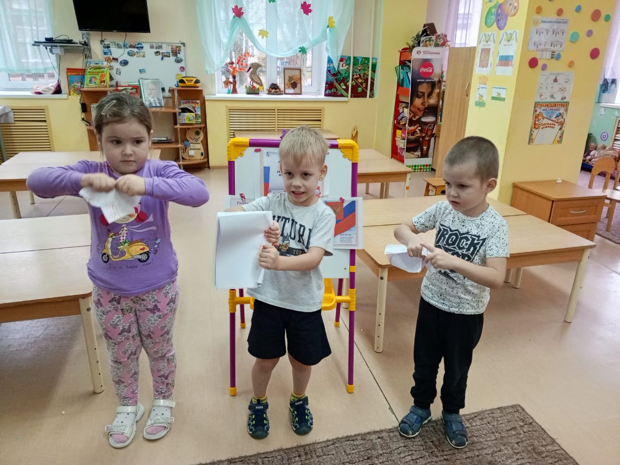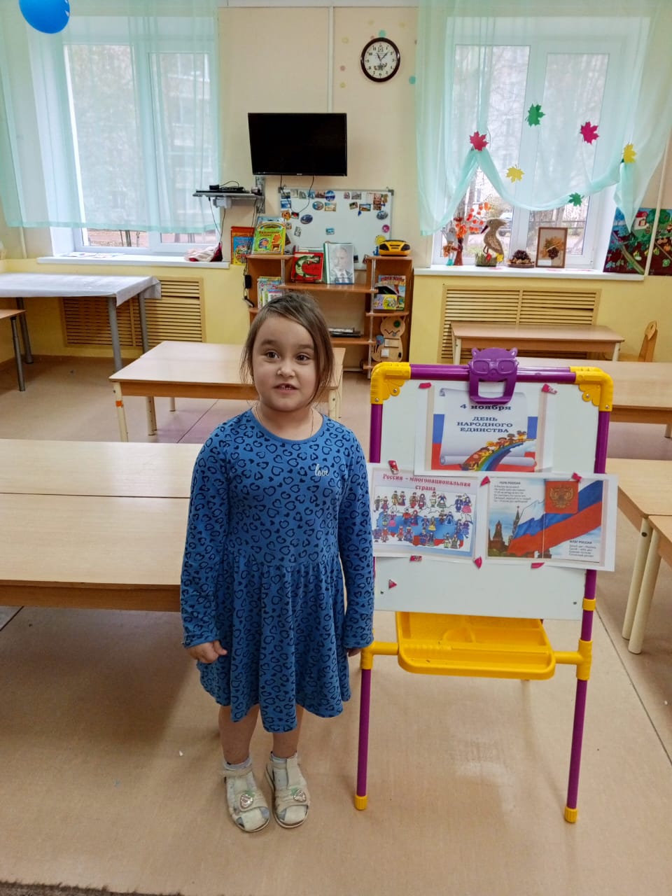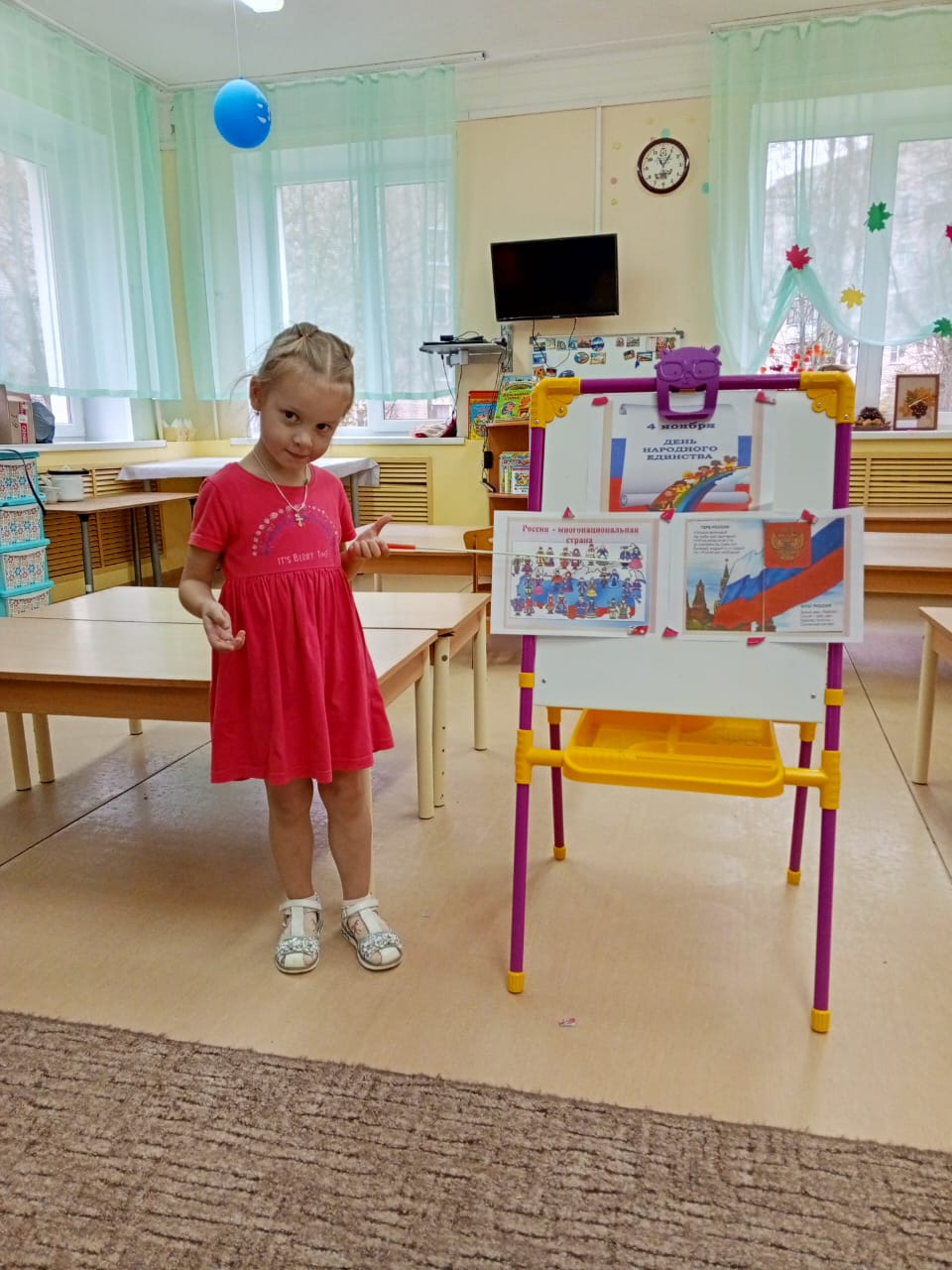 В средней группе "Солнышко" прошло занятие "День Народного Единства" Цель занятия: воспитание гуманной, духовно-нравственной личности, достойных будущих граждан России, патриотов своего Отечества. На занятие ребята закрепляли представления о том, что наша страна огромная, многонациональная называется Россия. Познакомились с историей возникновения праздника. Закрепили знания о флаге, гербе России. Читали стихи.