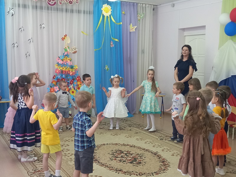 Закончился праздник совместным танцем под песню " Я, ты, он, она - вместе целая семья ", а также чаепитием.