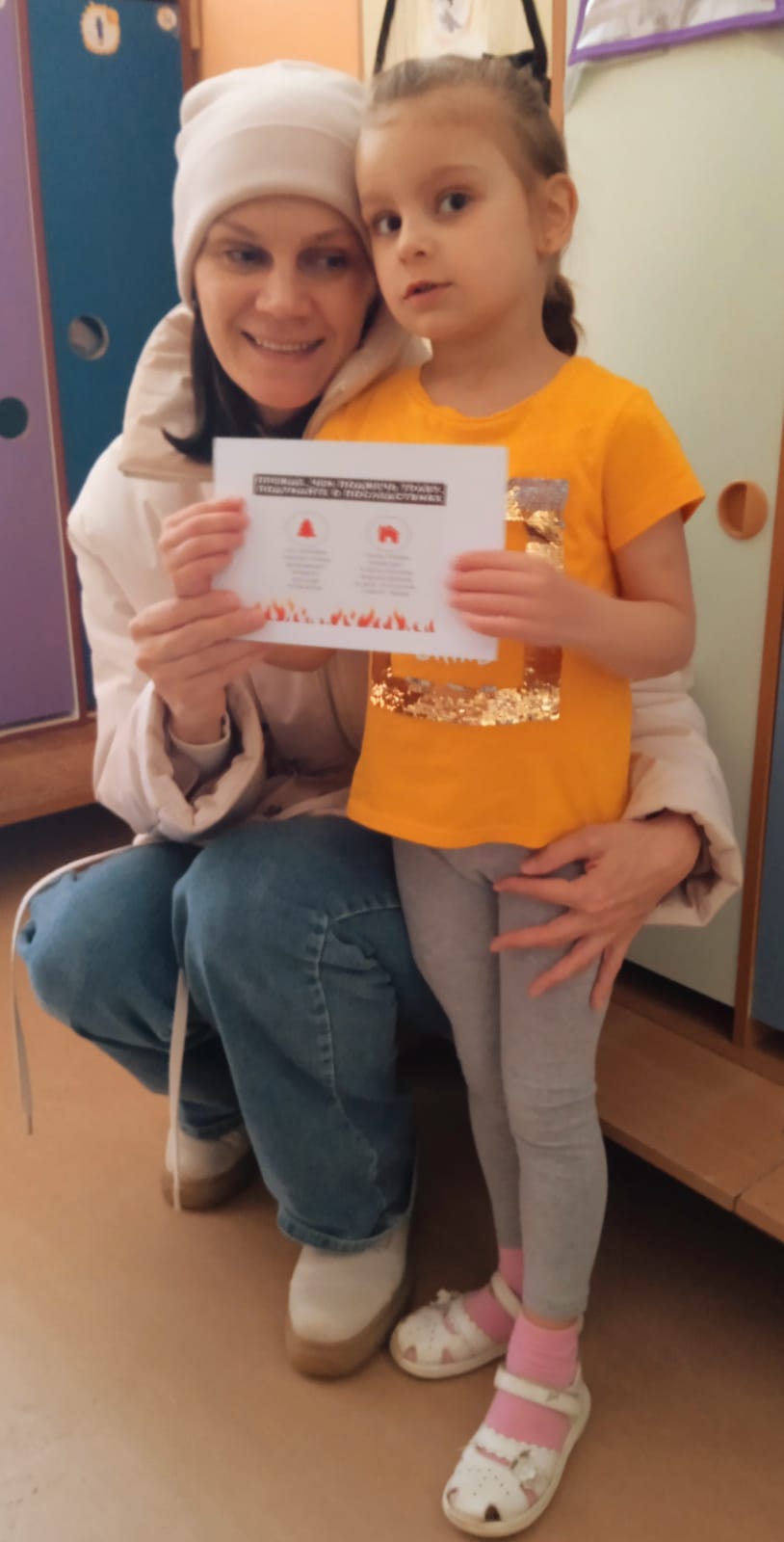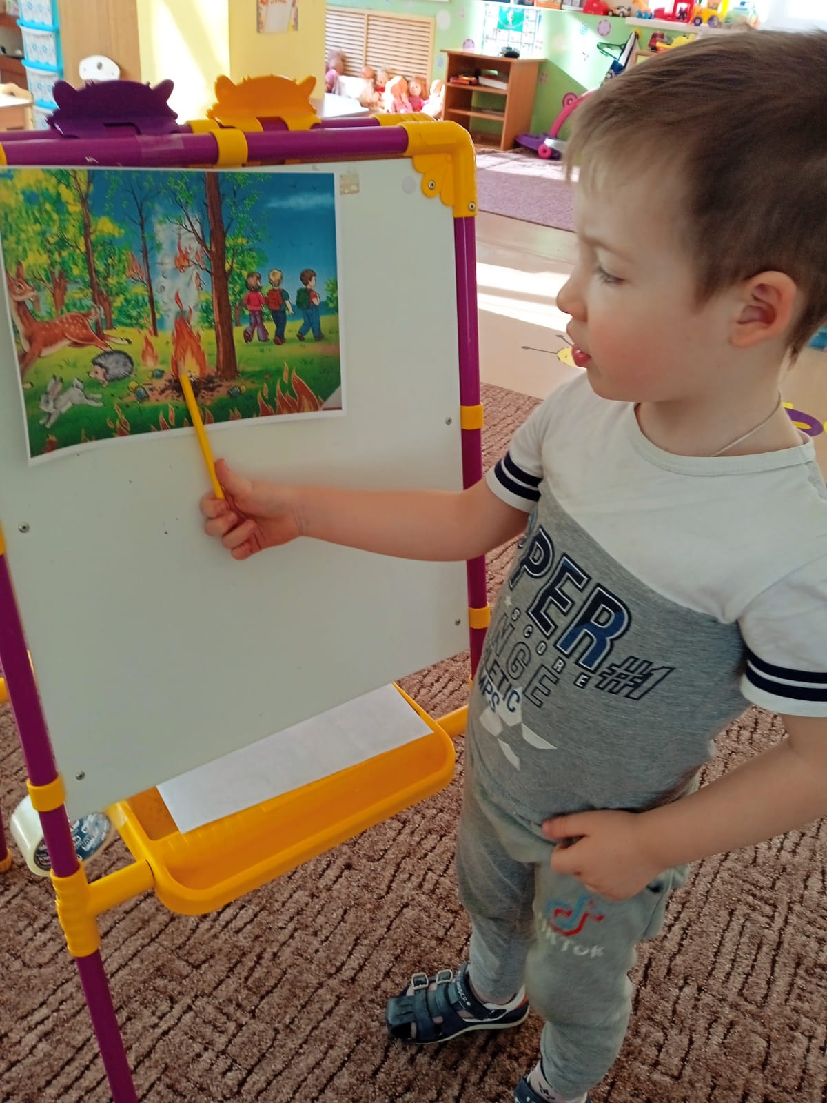 С воспитанниками средней группы "Солнышко" проведена беседа "Защити лес от пожаров". В ходе беседы дети закрепляли знания о роли леса в жизни человека и животных, объяснены причины и последствия лесных пожаров. Также воспитателем были предложены памятки о причинах лесных пожаров: разведение костров в лесной зоне и поджёг сухой травы. Дети вручили памятки сотрудникам детского сада и родителям.