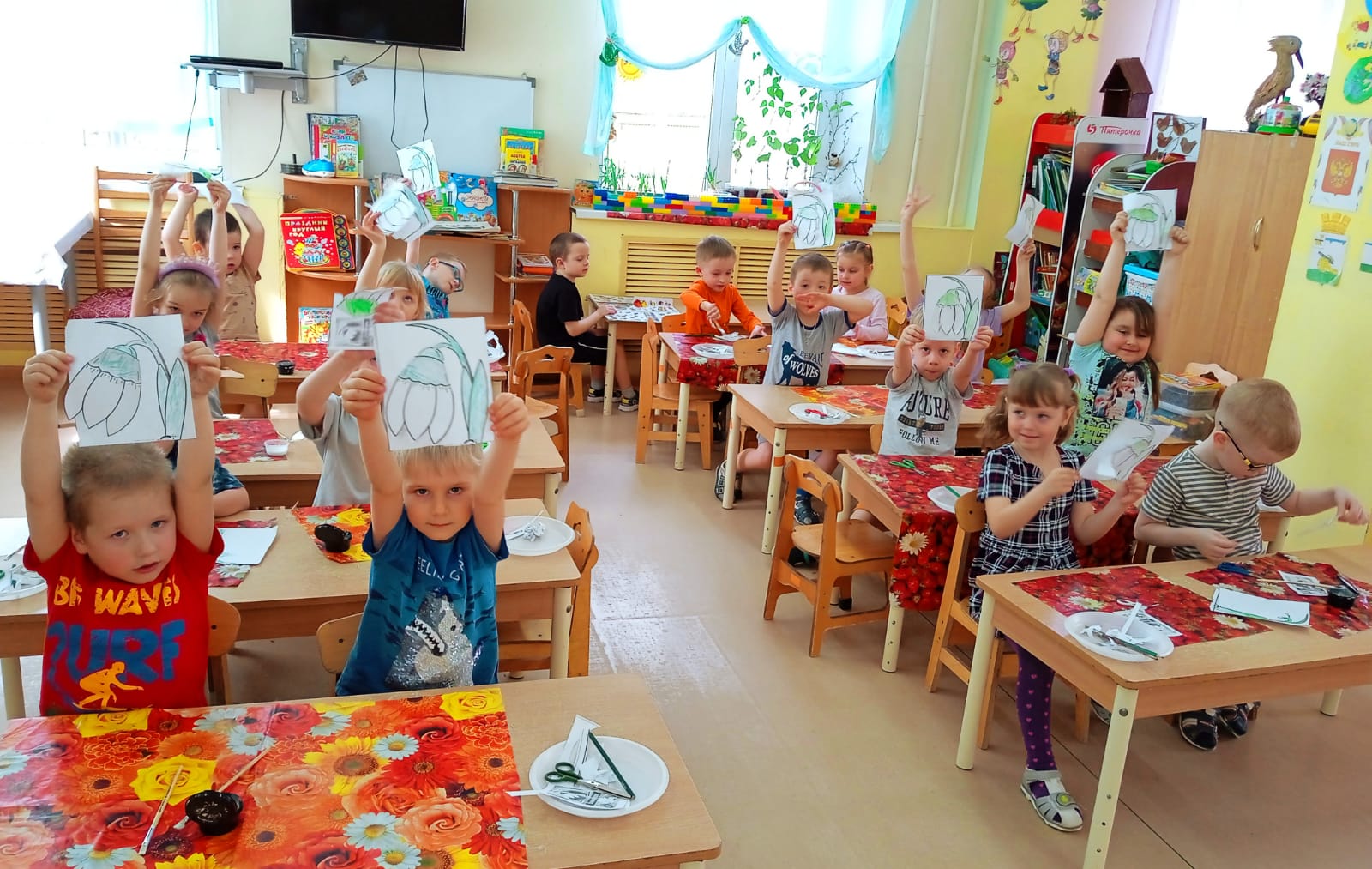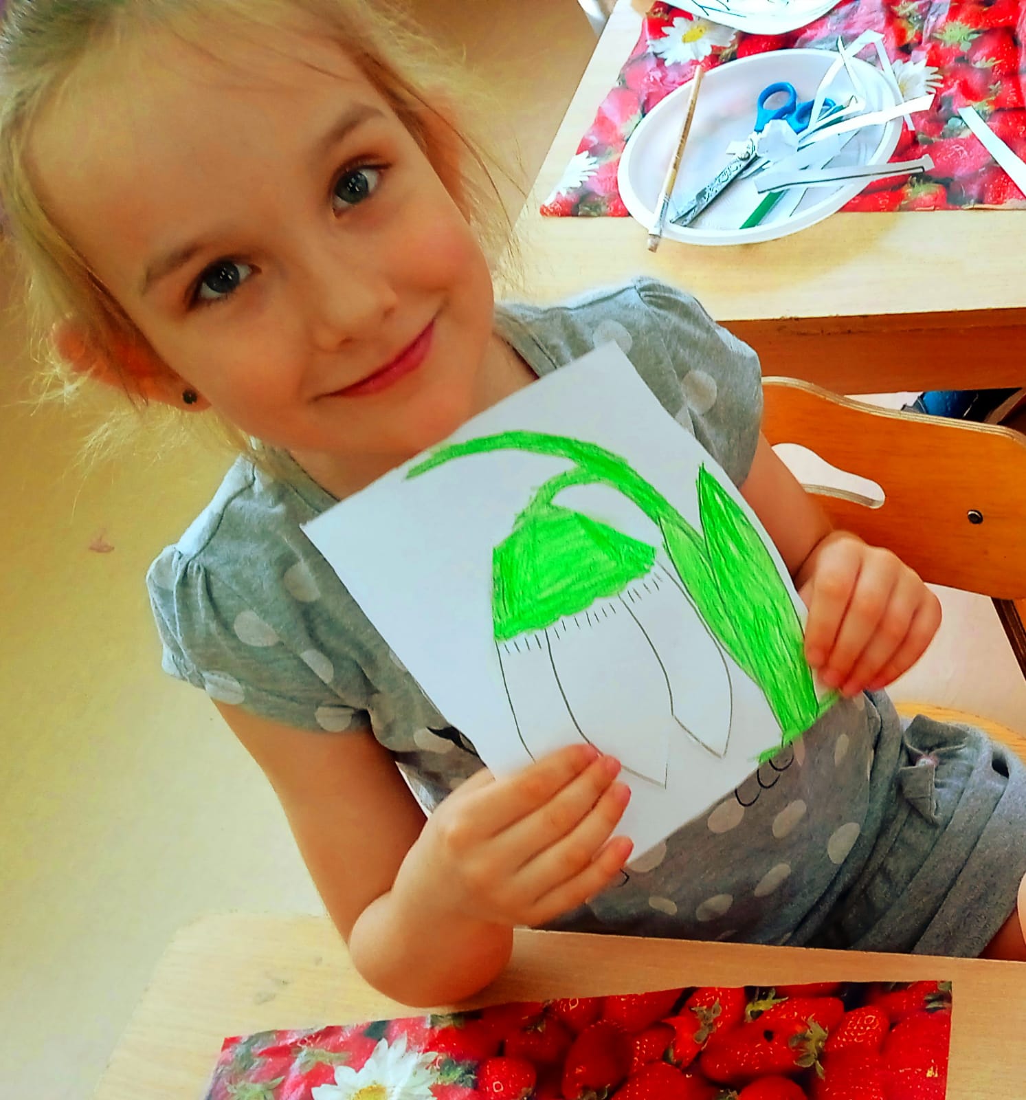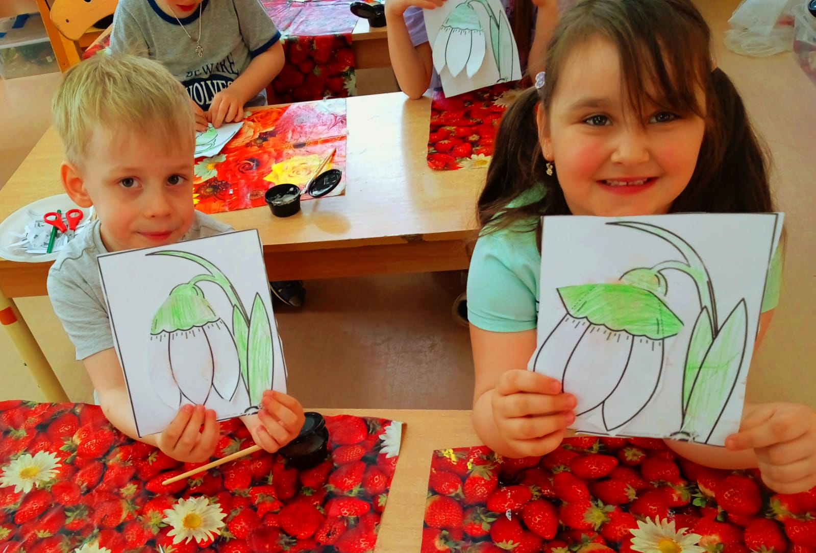 В день подснежника с воспитанниками средней группы была проведена интегрированная организованная образовательная деятельность по аппликации.