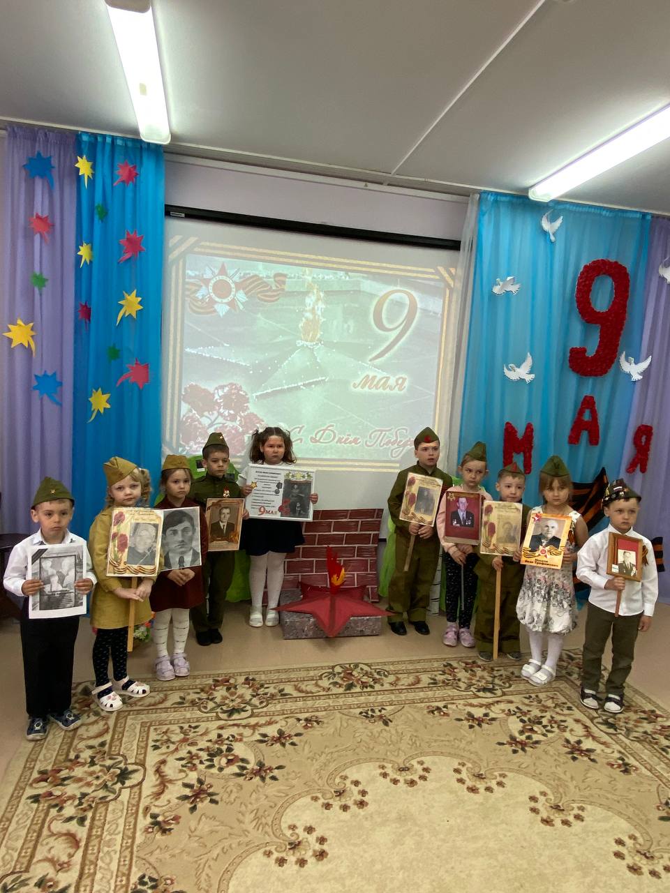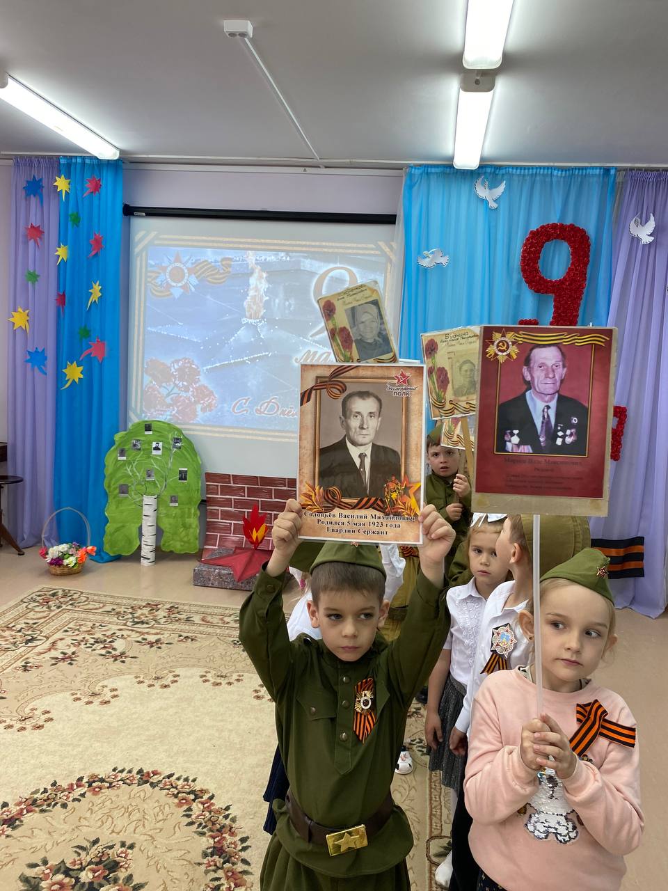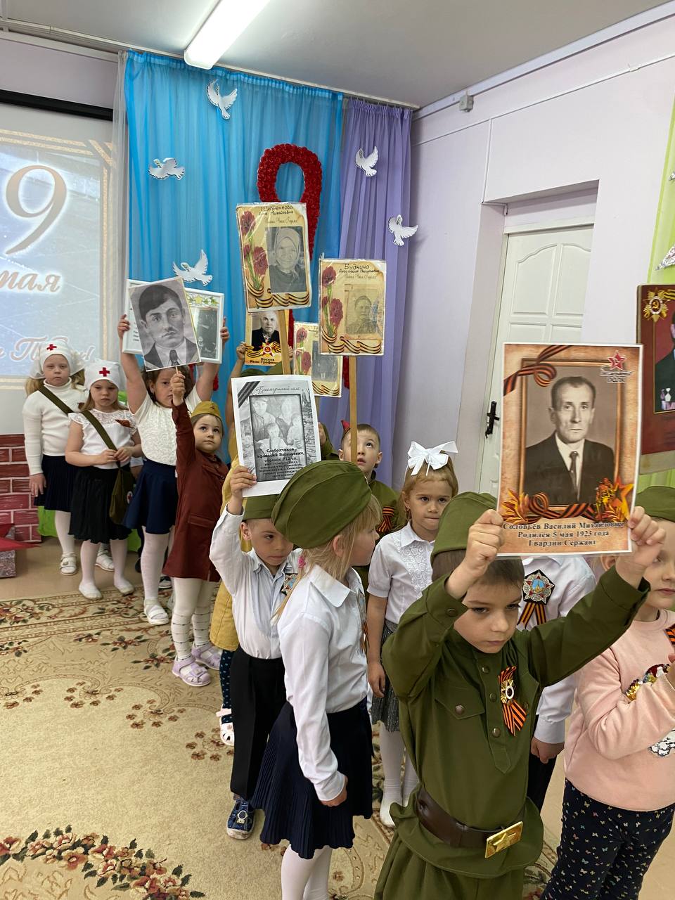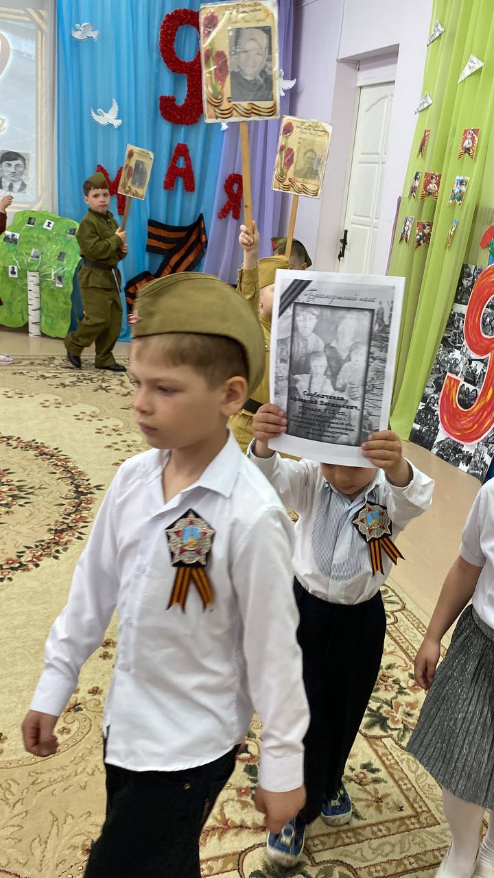 7 мая в нашем дошкольном учреждении прошла акция "Бессмертный полк". Воспитанники детского сада, совместно с родителями, подготовили портреты своих родных – участников ВОВ, изготовили транспаранты.