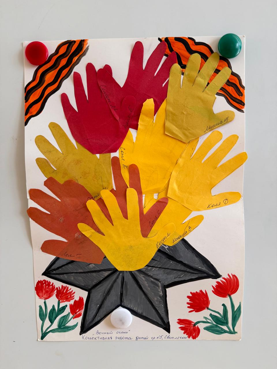 Итогом проекта стала коллективная работа с детьми "Вечный огонь".