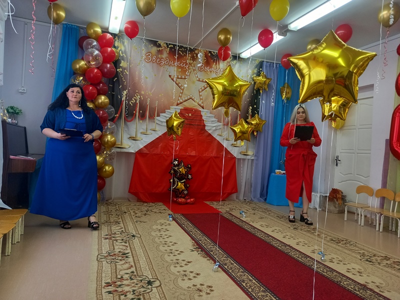 Праздник начался с торжественного открытия вечера и представления "звёздных" выпускников очаровательными ведущими Анастасией Николаевной Галаниной и Светланой Анатольевной Сотник. Далее дети продемонстрировали свои таланты и умения. Они исполнили зажигательные танцы, прочитали стихи и спели песни, показали смешные театральные сценки, вызвав бурю аплодисментов у зрителей. С поздравлениями и танцем выступили маленькие звёздочки средней группы. В конце праздника всех поздравила заведующий детским садом Наталья Александровна Ананова и вручила дипломы об окончании детского сада, а также небольшие памятные подарки от воспитателей и родителей.