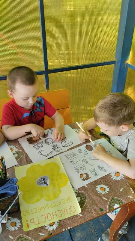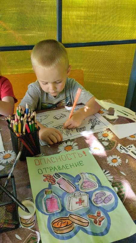 Проводимая с детьми работа охватывала разные направления: «Пожарная безопасность», «Безопасность дорожного движения», «Один дома», «Безопасность на улице», «Безопасность в природе». Воспитатели проводили с детьми занимательные беседы, читали художественную литературу, организовывали игровую деятельность. В продуктивной творческой деятельности дети изобразили свои знания о правилах безопасного поведения.